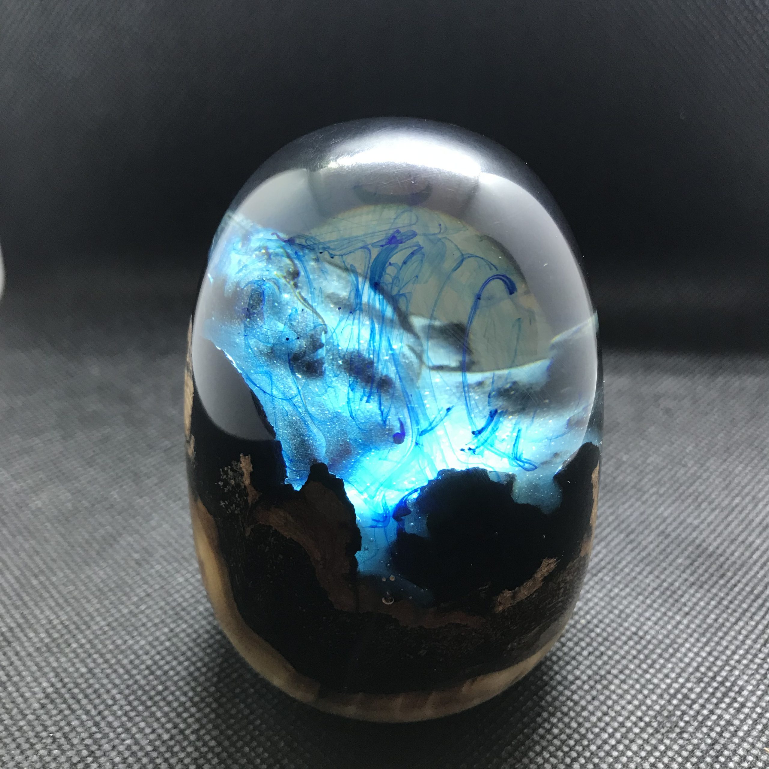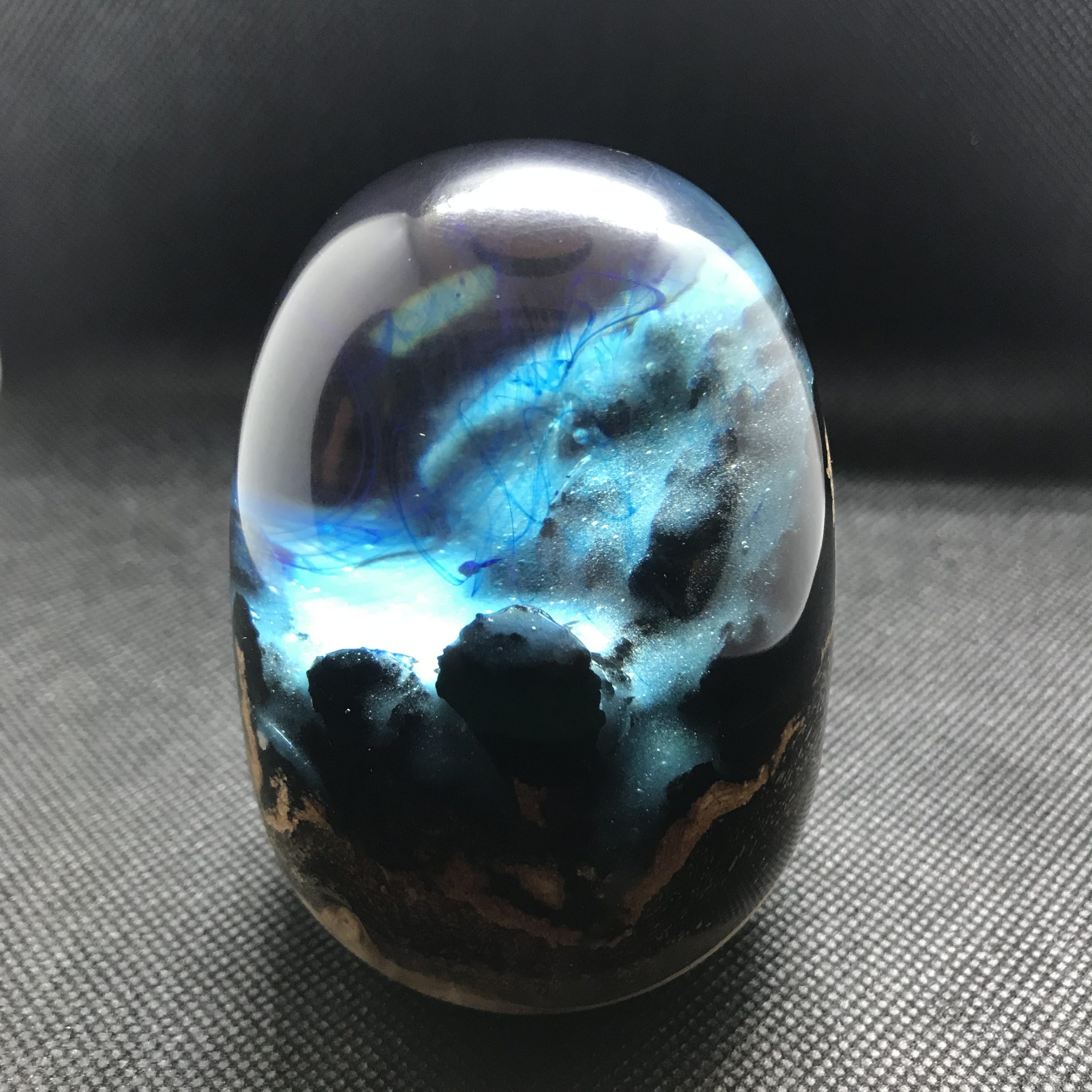 Jajo wykonane z narośli drzewnych i żywicy epoksydowej.