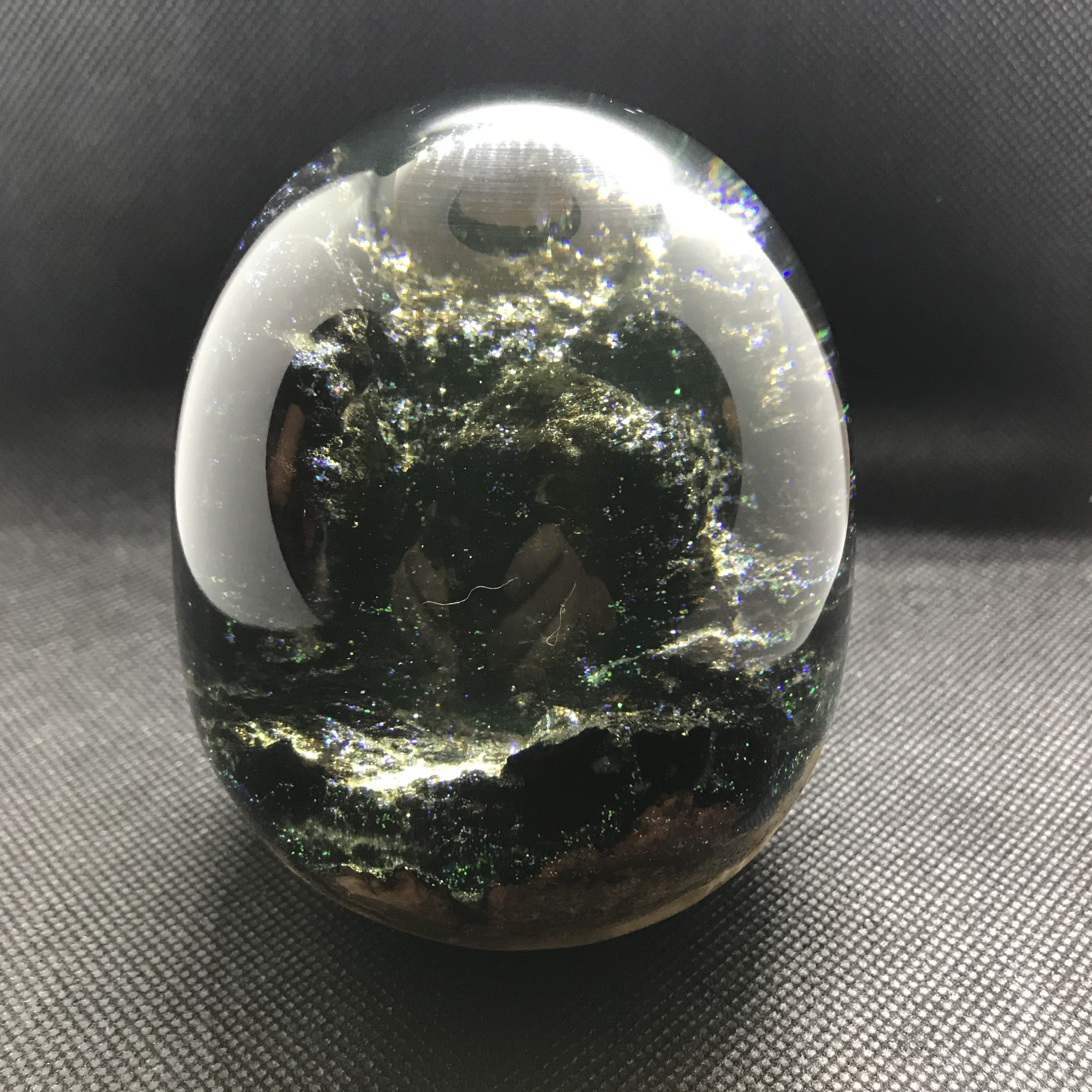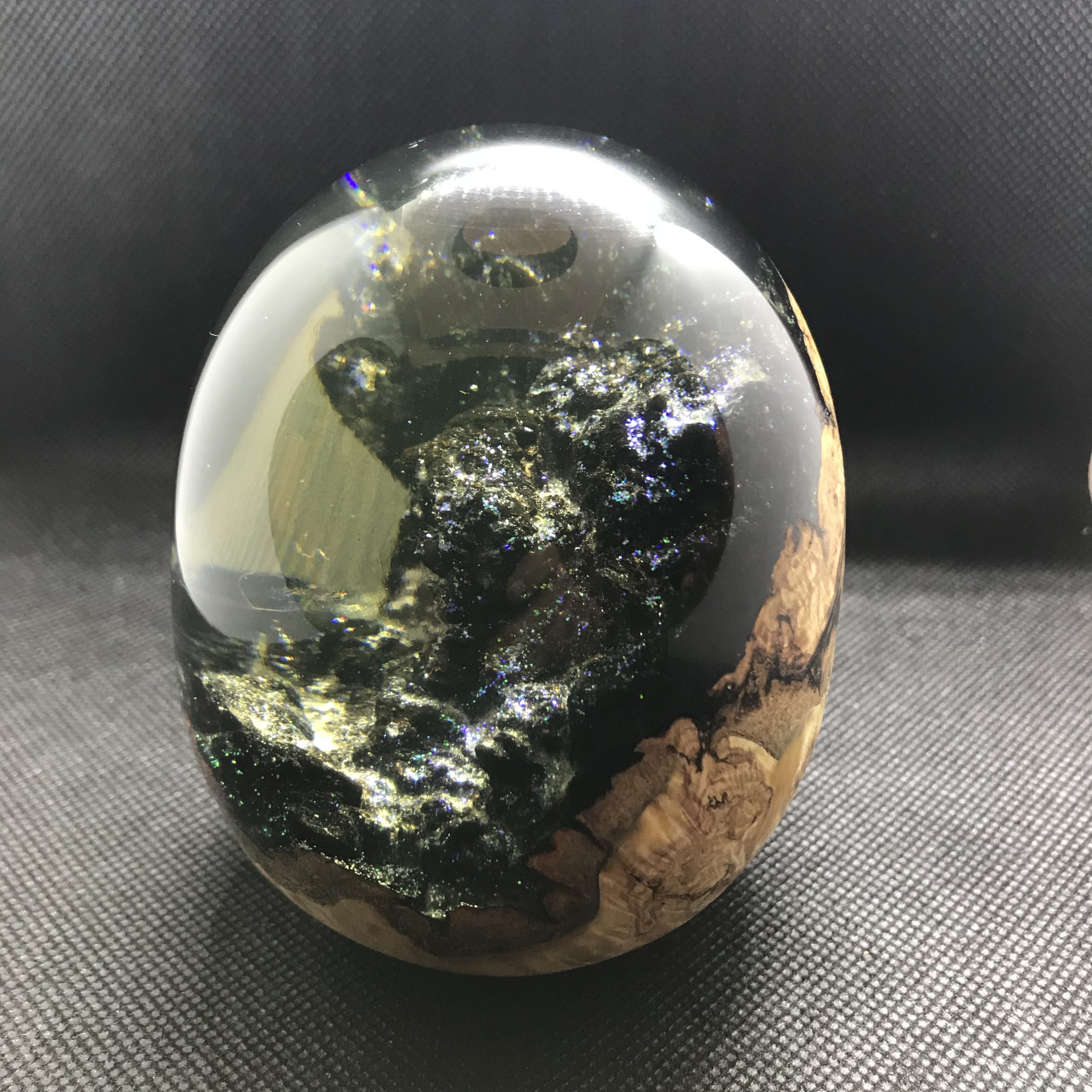 Jajo wykonane z narośli drzewnych i żywicy epoksydowej.